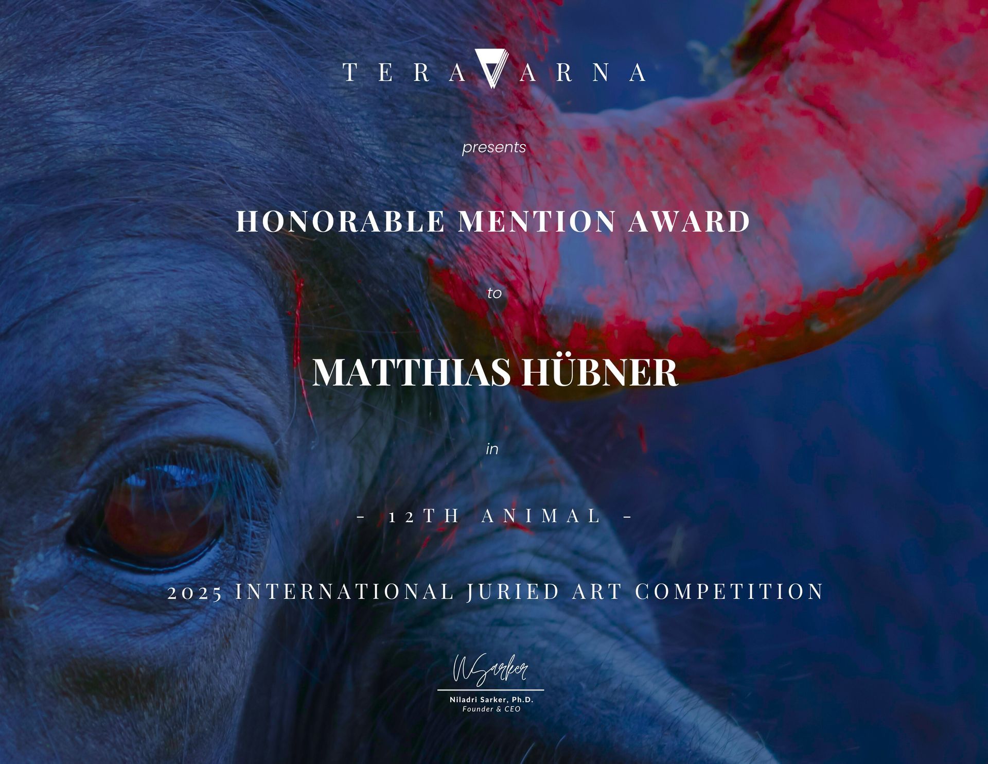 Honorable Mention Award für das Gemälde "Beherrschung" - Teravarna "International Juried Art Competition 2025 - 12th Animal